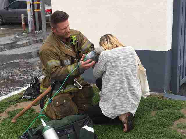 "As I was standing outside, I saw the firefighter, Mr. Klein, running toward the curbside grass area carrying something," Fernando told The Dodo. "I didn't know what it was at first, but then I realized that it was a pet who had been trapped in the fire. The dog was unconscious, limp and not moving at all."